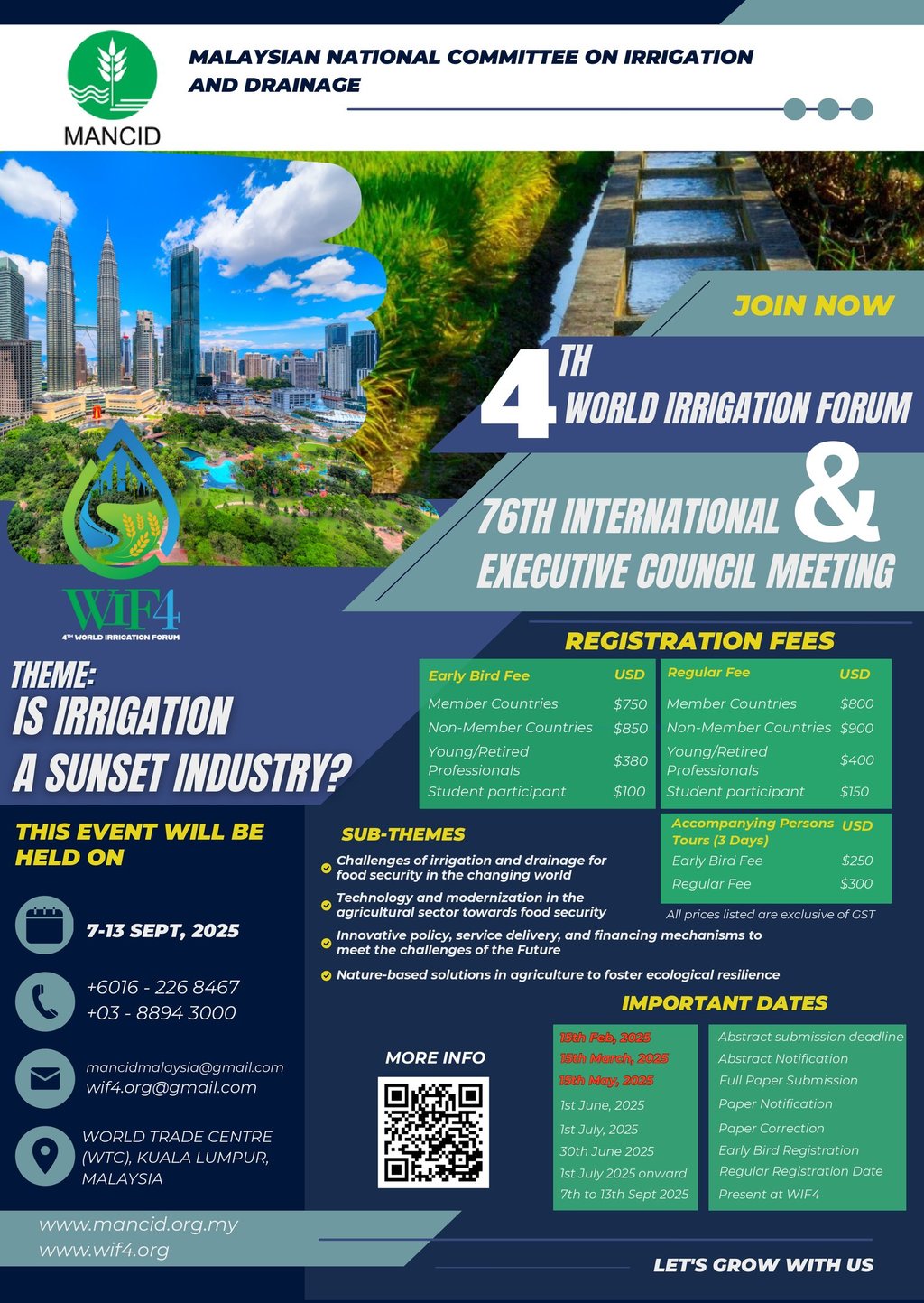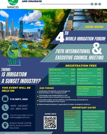 #WIF4 #ICID2025 #WorldIrrigationForum #IrigasiUntukMasaDepan #WaterForSustainability #KualaLumpur2025 #SDAGlobal #TransformasiIrigasi
