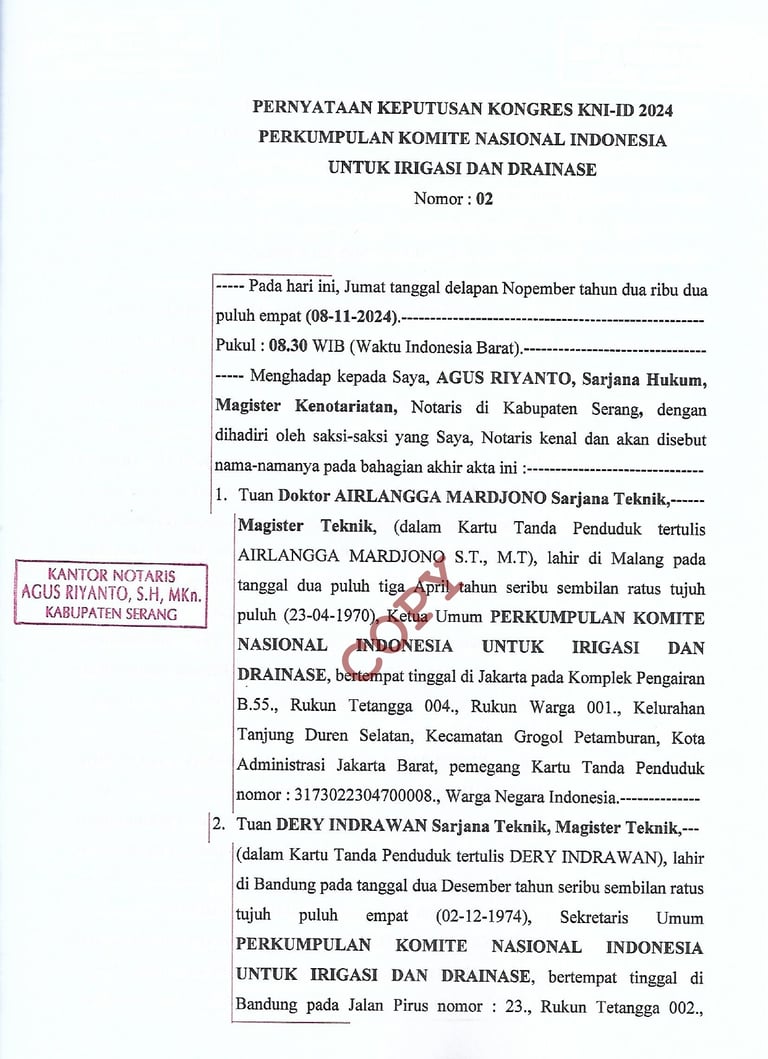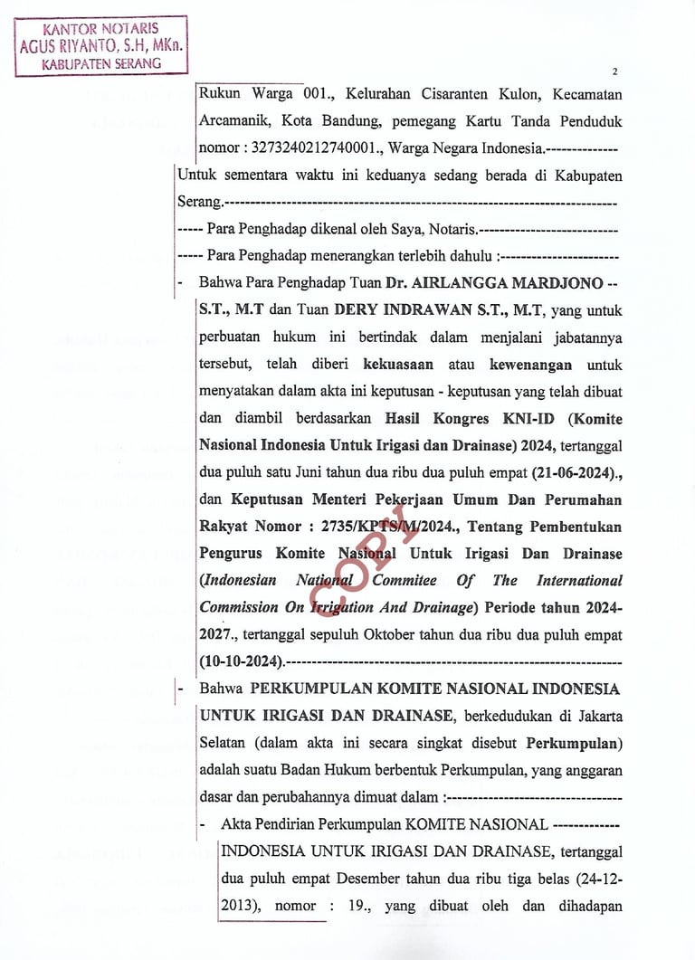 Indonesian National CommitteE on irrigation and drainage (inacid) / Komite Nasional indonesia untuk irigasi dan drainase (kni-id)