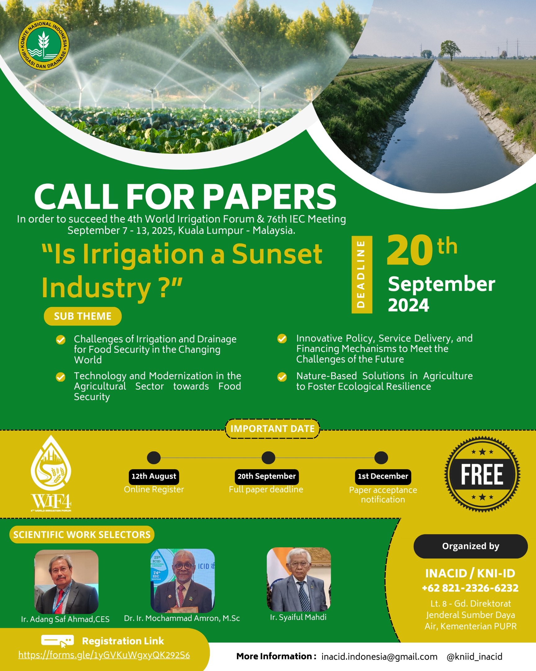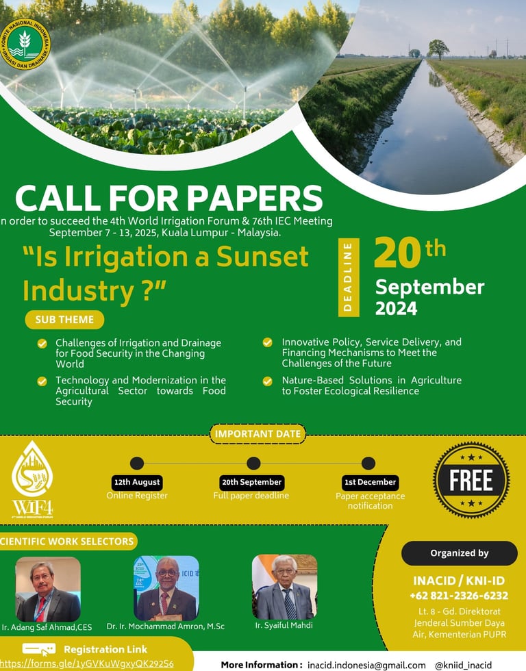 Pengumuman Call for Paper 4th World Irrigation Forum and 76th IECM