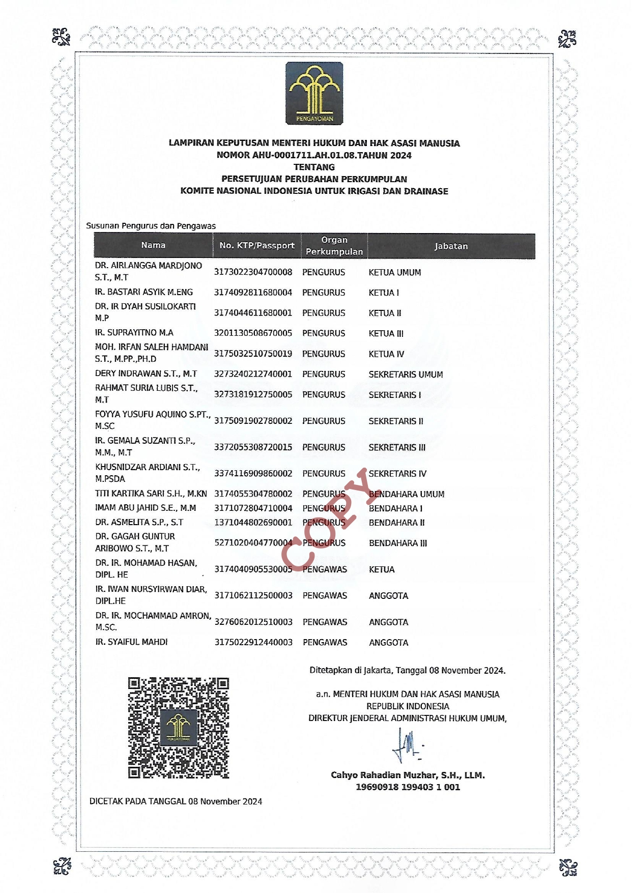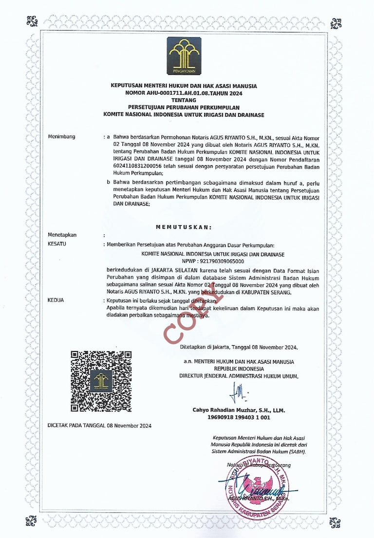 Indonesian National CommitteE on irrigation and drainage (inacid) / Komite Nasional indonesia untuk irigasi dan drainase (kni-id)