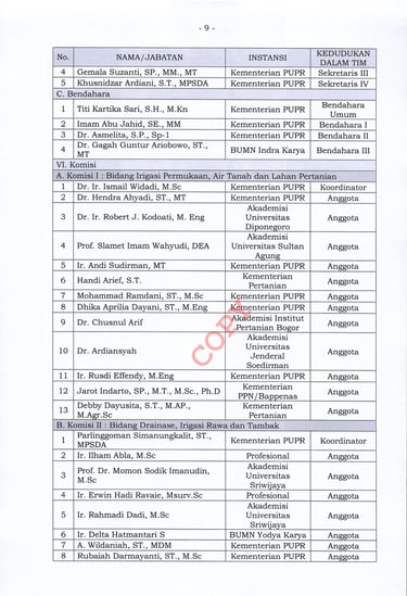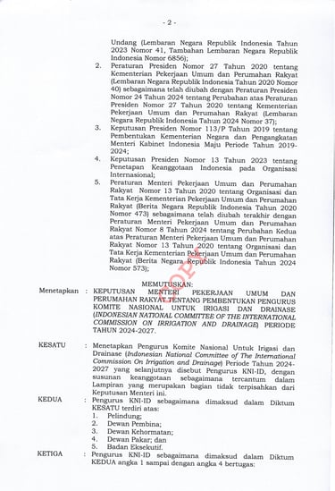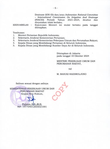 Pembentukan Pengurus Komite Nasional untuk Irigasi dan Drainase (INACID)