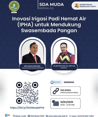 ✨ Jangan lewatkan kesempatan berharga ini untuk belajar, berdiskusi, dan terinspirasi langsung dari para narasumber ahli dan praktisi muda yang telah berkecimpung di bidang irigasi dan pertanian.
